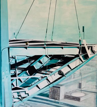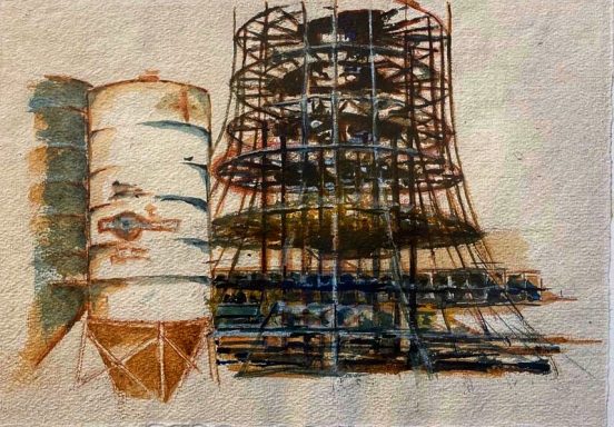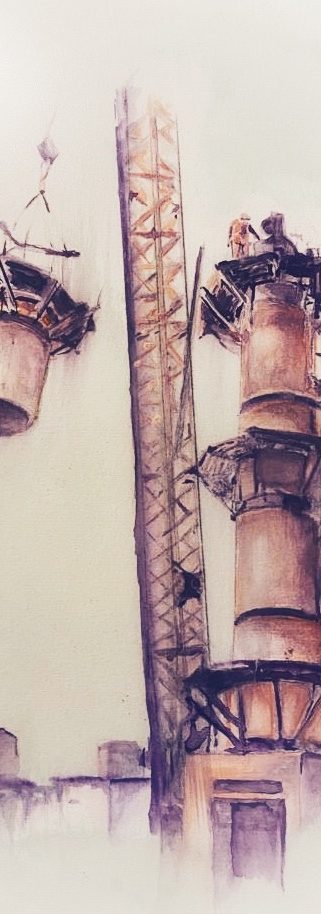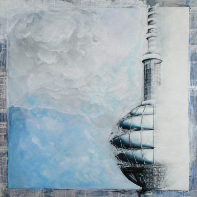 Ever since moving to Berlin 30 years ago, I have been fascinated by the television tower, locally known as the “Alex”. At 368m in height and Germany's tallest buiding, it defines the skyline and acts as a trusted guide when navigating the city. I began to question the motivations behind its construction. Built by the GDR in a cold war climate amidst the political controversies of the late 1960s and at a time at a time when wall construction was already costing the state 1.82billionDDM, the tower must have served a serious purpose, I thought. I searched in vain for concrete answers, but research revealed only inadequate facts: built at a price of 30.8million DDM to broadcast two East German TV channels for 4 hours a day thereby blocking western television transmission. Questions remained. Who financed it? Was espionage the incentive – the ultimate observation post of the surveillance state? Was it a display of power, merely a phallic object? In the end, my attempt to unravel the mystery of this mythic symbol of the German capital intellectually, culminated in colours and shapes as everchanging and open to interpretation as history itself. I found no answers, only colours in my own personal perspective. Ultimately, “Alex” the East German television tower now exists as the great glittering disco ball of the party city Berlin.